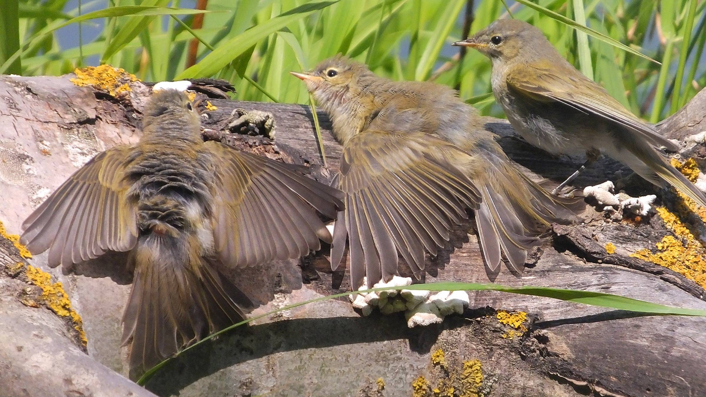 Вячелав Копотий. Здравия, Константин! Прошу прощения, что не ответил оперативно: с понедельника сидел без инета..... На снимке ко-то из пеночковых. И первые двое (слева направо), похоже, подростки. Предполагаю пеночек-теньковок. Но не безательнативности. Не забываем про веснянок и трещоток. Хотя последние, учитывая ландшафты съёмок, маловероятны. Я на следующем дежурстве услышал точно голос пеночки теньковки.