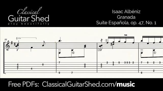 https://classicalguitarshed.com/gf1/ FREE PDF Sheet music book - 30 and Easy(ish) Classical Guitar Favorites. Over 150,000 other guitarists have downloaded and use CGS guitar books. Get yours free here: https://classicalguitarshed.com/books PDF Download of this piece: https://www.classicalguitarshed.com/sm-albeniz-granada/ https://classicalguitarshed.com/membership/ Click this link to learn more about our full course for classical guitar. It's organized, structured, and strategic from the beginning, so you make the most of your time and avoid injury and frustration. Build your basics, fill the gaps, and rise to more advanced levels of playing. Free sheet music library: https://classicalguitarshed.com/music Free tutorials: https://classicalguitarshed.com/cgs-archives Structured classical guitar course: https://classicalguitarshed.com/membership Are you learning classical guitar or would like to learn classical guitar? ClassicalGuitarShed.com can help you on the journey. If you want to rise to new levels in your playing, it just takes time and strategic work. To play classical guitar well, you need to know: * how to hold and touch the guitar - form and positioning * how to move your fingers and hands - efficient, clean, and fluid * how to learn pieces - reading music, understanding what you see, ingraining, polishing * how to craft the music so it is beautiful - swells and fades, rhythm, touch * how to practice so all these skills improve over time and don't go away At the root of beautiful playing is a solid technique (aka “the way your hands move”). You may have beautiful music in your head, but if your hands can't play it, it won't come out of the guitar. But bad technique puts a limit on your playing. Speed, tone quality, and control can suffer. Good technique gets stronger and more instinctive with every practice. It forms the bedrock foundation for your music. And you may want to understand music so you learn it more easily and it makes more sense. This can help you avoid the excess frustration and dismay that comes with shoddy practice and prolonged confusion. But playing the notes is not enough. Like an actor bring words to life, we breathe life into our pieces. And we can do this in an organized way, day in and day out, reliably. Great musicians can play wonderfully in any mood. They do not rely on emotions. Instead, they create music that affects our emotions. This is a trained skill, not an inborn talent. Playing classical guitar is a long-term study. It's something we do in our homes as part of our days. We play for ourselves, for the quality it adds to life. We may enjoy playing guitar for others, but most of the time we are alone with our work. There are methods and formulas for great practice. We can use our time well so that see more progress. We can fix the problems and erase the mistakes. And we can enjoy conquering the plentiful challenges that classical guitar music offers. If you plan to play classical guitar for any length of time, it is worth it to get help. It's not something we can do on our own, like folk music. I have a structured and organized course to help you play classical guitar. If you like, you can learn more here: https://classicalguitarshed.com/membership/ If you would like to hear me (Allen Mathews) playing, visit my other youtube channel: http://www.youtube.com/allenmathews/ Or check out these other YouTube videos: 11 lessons for beginners: https://youtu.be/vEau0pJdgqc Guitar basics: https://youtu.be/e51Z-50GzDo Classical guitar nails: https://youtu.be/z0jz1ms_AlM How to change classical guitar strings: https://youtu.be/AKsVF72Tsdg Most common errors: https://youtu.be/kPBqjgF9-l8 How to practice sight-reading on guitar: https://youtu.be/IZU3BZBRq2A Note-perfect playing: https://youtu.be/GbCQr1_v_9w How long does it take to learn guitar?: https://youtu.be/MJhSCXzwqCI Right-hand guitar exercises: https://youtu.be/lYv0fwHIU_w The perfect left hand on guitar: https://youtu.be/GwUsWeIyhkg Slow practice: https://youtu.be/fZTKRxtMwyU Classical guitar scales (5 shapes): https://youtu.be/cAFbEYqvYSU Guitar tremolo technique: https://youtu.be/nV2HUMx1su0 I/M alternation technique: https://youtu.be/8Jat_Bxme5c Scale variations: https://youtu.be/ukF5ukFjKS0 How chords and scales are related: https://youtu.be/j9K01pYwIRY Guitar squeaks: https://youtu.be/8wd9tsnNSLM How to hold a guitar: https://youtu.be/fxDoRaRoiUQ Classical guitar without fingernails: https://youtu.be/FAPB1aGdka0 Classical on acoustic: https://youtu.be/wGDVuRw7RGE Rasgueado technique: https://youtu.be/YL-5EhkZVck Avoid rest strokes: https://youtu.be/ahurGVdOA5E Sergio Assad left-hand workout: https://youtu.be/24vOFOOtVgk Focal dystonia: https://youtu.be/-2MeXB6LxQ4uu Bar chord tips: https://youtu.be/PWroXMukbjI