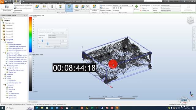 Моделирование работы противопожарной вентиляции в зале кинотеатра