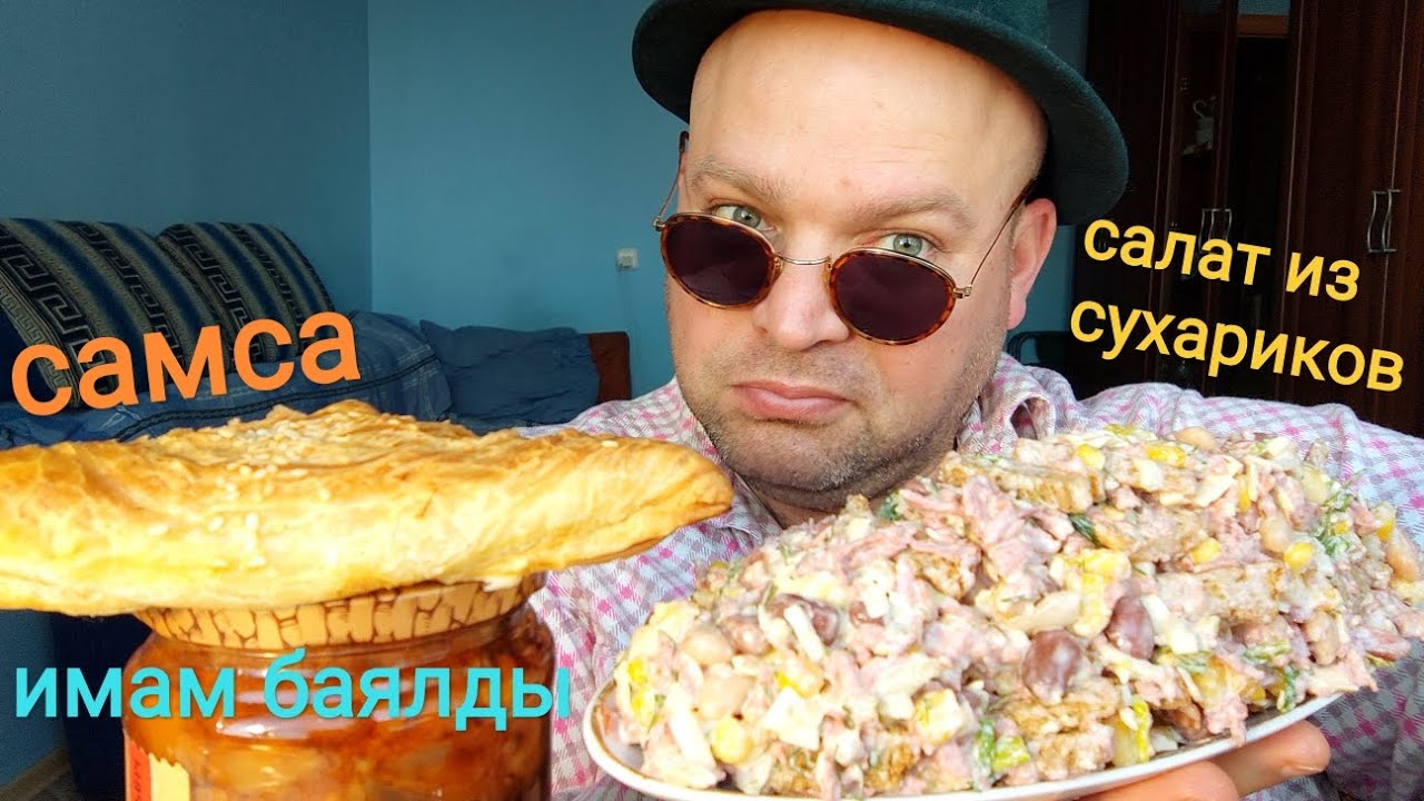 МУКБАНГ САМСА с курицей и салат из сухариков/обжор имам баялды
