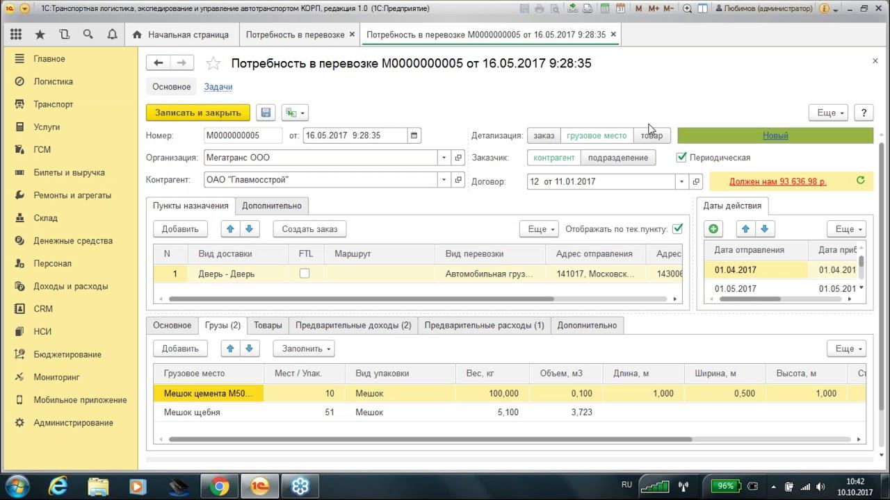 Запись вебинара от 10 октября 2017 года «Обзор возможностей решения «1С:Транспортная логистика, экспедирование и управление автотранспортом КОРП»