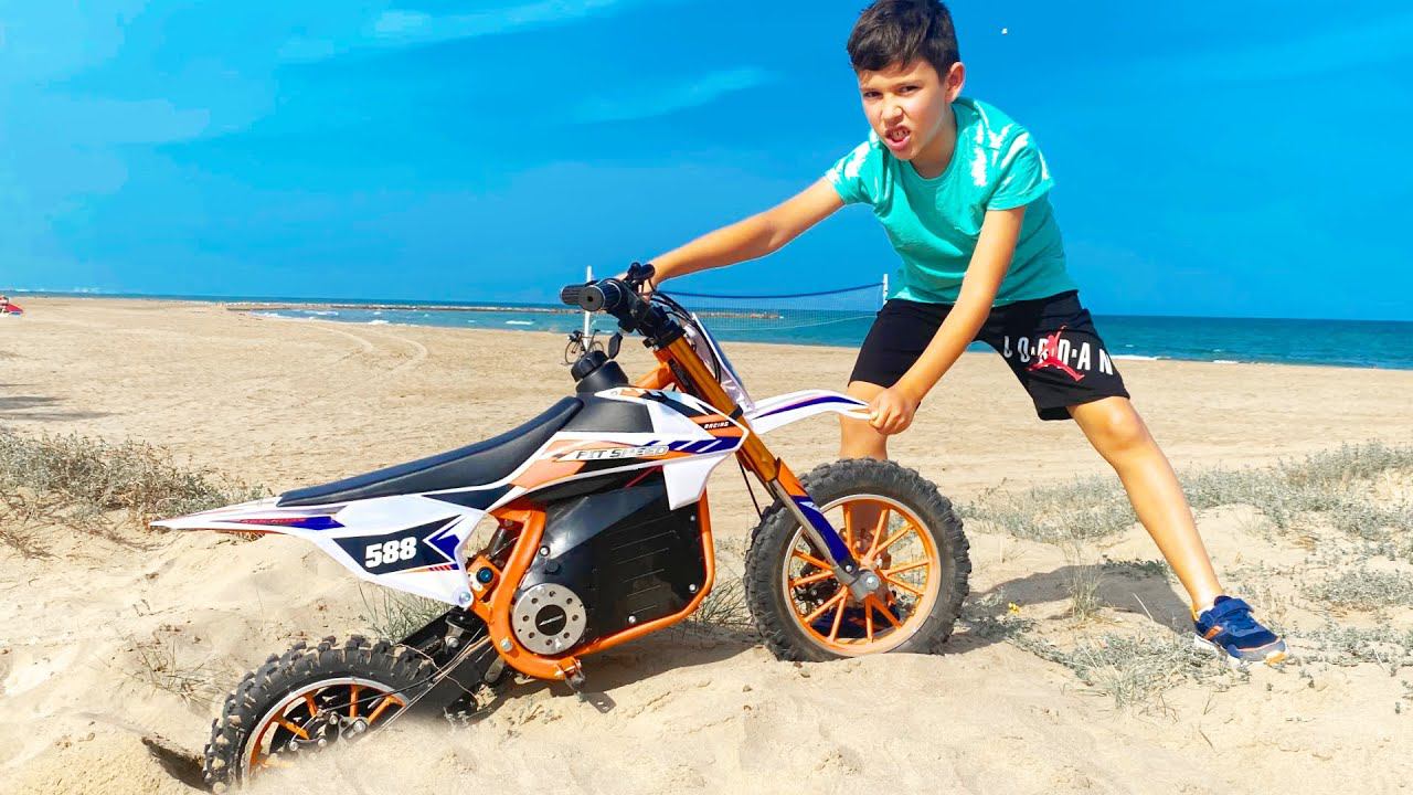 أرتيوم يركب دراجة نارية على الشاطئ علقت الدراجة النارية في الرمال