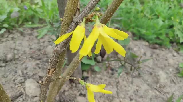 На кустике форзиции первые цветы.