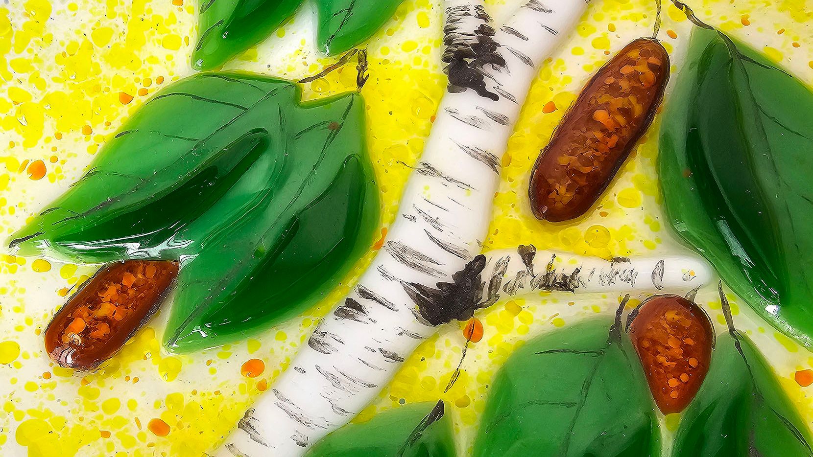 подарочная тарелка русская березка ручная работа фьюзинг стекла