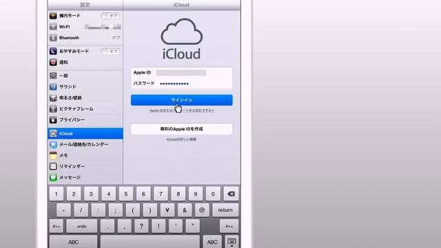 iCloudの設定 iPad mini