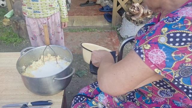 готовлю на улице. овощное пюрЭ и купаты на огнЭ