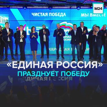 Штаб общественной поддержки «Единой России» в Москве празднует победу. После обработки 30,49 % протоколов партия набирает 45,10 % голосов по партийным спискам. ?Явка на выборах в Госдуму в Москве составила около 50 %, сообщил Сергей Собянин.