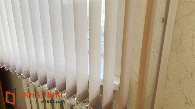 Вертикальные жалюзи из ткани Мальта карамель на пластиковые окна в школе города Севастополя