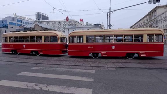 Трамваи едут на парад.