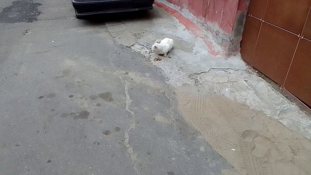 Белый уличный кот наелся ^^