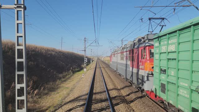 27 сентября 2023 года в 15:26:50 104 км- 110 км перегона Кутейниково-Боченково Северо-Кавказская железная дорога 4:04 - ВЛ80с-917 с грузовым поездом