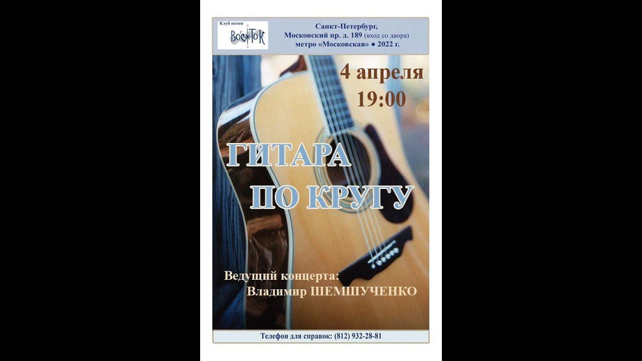 Гитара по кругу. Ведущий Владимир Шемшученко. Клуб песни «Восток». 4 апреля 2022 г. Санкт-Петербург, Московский пр., д. 189. Афиша - Елена Демьянова. Видеозапись - Алла Левитан.