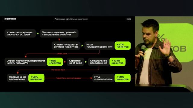 Всё для CRM-маркетологов: кейсы из разных индустрий, бесплатные курсы, вебинары и прямые эфиры, вакансии и резюме — в нашем суперботе: https://superbot.mindbox.ru/promo?utm_source=youtube&utm_medium=social&utm_campaign=event&utm_content=intensiv&product_id=241125_on_intensiv Стратегия «Афиши»: лояльность клиентов важнее выручки в моменте. Благодаря этому выручка CRM-маркетинга выросла на 28% год к году, а email-канала — на 41%. На Mindbox Конференции 2024 директор по маркетингу «Афиши» рассказал, как бизнесу зарабатывать на долгой дистанции: - когда можно пожертвовать маржинальностью, чтобы вернуть клиента; - как комбинировать контентные рассылки с продающими; - в каких случаях выгодно месяцами не коммуницировать с клиентом. 0:00 Вступительное слово 0:45 Спикер — директор по маркетингу «Афиши» Антон Бельчиков 0:51 Об «Афише» и ее индустрии 3:22 Задачи маркетинга и три правила для роста LTV 5:08 Как увеличить частоту покупок у «некиношной» аудитории 7:55 Как контентные рассылки повышают выручку от маркетинговых 12:02 Как работать с клиентами в оттоке 16:23 Результаты CRM-маркетинга 17:49 Вопрос зрителя: Получают ли пользователи «Афиши» бонусы за покупки? Что планируете делать с сервисными сборами? 19:34 Вопрос зрителя: Как следите за частотой коммуникаций? 22:07 Вопрос зрителя: Используете ли автоматические подборки? 24:47 Вопрос зрителя: Какое окно атрибуции используете для разных каналов? Mindbox — платформа клиентских данных для автоматизации маркетинга: https://mindbox.ru/subscribe?utm_source=youtube&utm_medium=social&utm_campaign=event&utm_content=intensiv Подписка на email-рассылки Mindbox: https://mindbox.ru/subscribe?utm_source=youtube&utm_medium=social&utm_campaign=event&utm_content=241125_on_intensiv Подписка на Telegram-канал Mindbox Журнала: https://t.me/mindbox