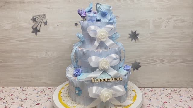 Торт из памперсов и детской одежды для мальчика