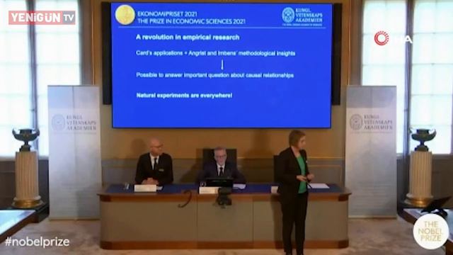İsveç'in başkenti Stockholm'de bulunan İsveç Kraliyet Bilimler Akademisi, Alfred Nobel anısına verilen Sveriges Riksbanks (İsveç Merkez Bankası) Ekonomi Ödülü'nün bu yılki sahiplerini açıkladı. Ekonomi Ödülü David Card, Joshua D. Angrist ve Guido W. Imbens’e verildi. David Card, "çalışma ekonomisine deneysel katkılarından” dolayı, Joshua D. Angrist ve Guido W. Imbens "nedensel bağıntıların analizine metodolojik katkılarından” dolayı ödüle layık görüldü. Kraliyet Bilimleri Akademisi tarafından yapılan açıklamada, bu yıl ödüle layık görülen bilim adamlarının toplumun büyük sorularının çoğunun yanıtlanabileceğini gösterdiği ifade edildi. Açıklamada, bilim adamlarının doğal deneyimleri kullanarak çözüme ulaştığı ve yaklaşımlarının diğer alanları da etkilediği belirtildi.