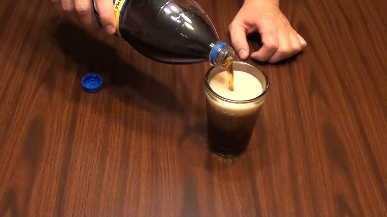 Все очень просто - нужно добавить немного виски, коньяка или бурбона перед тем как наливать газировку и проблема решена!