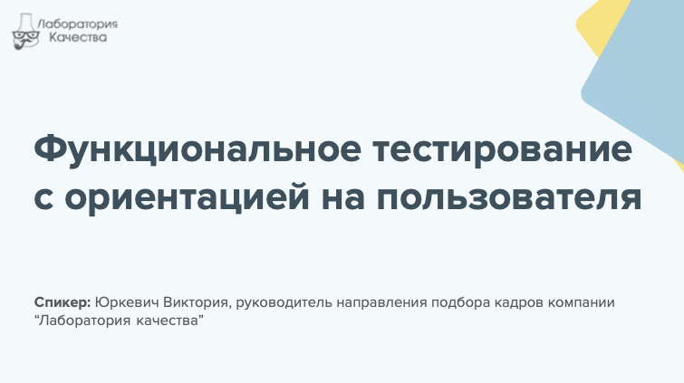 В данном видео Виктория Юркевич, руководитель направления подбора кадров компании "Лаборатория качества", детально рассказывает о функциональном тестировании с ориентацией на пользователя. Смотрите нас также на YouTube-канале: www.youtube.com/channel/UCUKj7hvw6phelqZPKKJnGBQ
