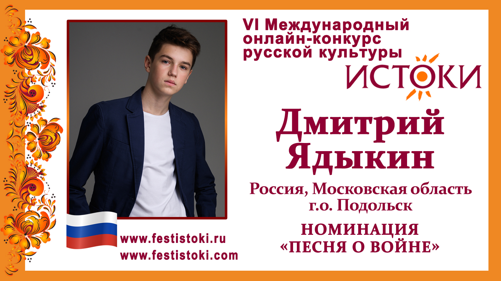 Участник VI Международного онлайн-конкурса русской культуры "Истоки". Номинация "Песня о войне". Песня "Облаком по небу" Муз.и.слова В.Ворон. Сайт: www.festistoki.ru / www.festistoki.com E-mail: festistoki@mail.ru