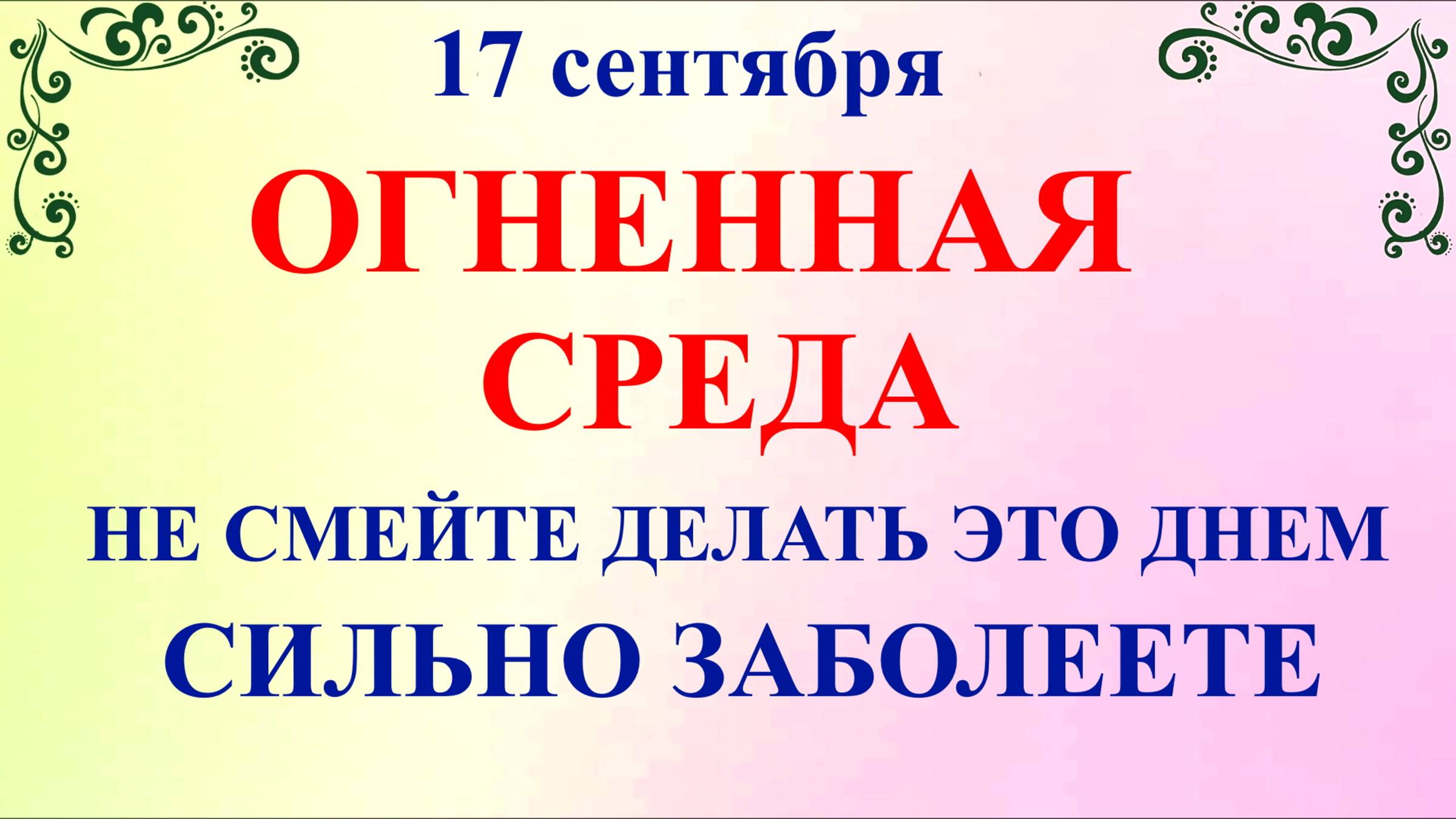 17 сентября народный праздник Неопалимая Купина, День Вавилы. Что нельзя делать 17 сентября. Народные традиции и приметы и суеверия 17 сентября. По церковному календарю 17 сентября праздник чтут память священномученика Вавила, епископа великой Антиохии, а с ним трех отроков: Урвана, Прилидиана, Епполония и мать их Христодулу. Большой церковный праздник иконы Божией Матери Неопалимая Купина в 2025 году это среда пятнадцатой Седмицы по пятидесятнице. В народе 17 сентября праздник называют Луковым Днем, такое название праздник получил за то, что в старину обычно сегодня убирали лук! Если Вам понравилось народный праздник Неопалимая Купина, приметы погоды 17 сентября праздник, какой сегодня праздник отправить по Viber, whats app, а также поделиться в социальных сетях vkontakt, odnoklassniki! День Вавилы 17 сентября ссылка на видео на нашем Ютуб канале: https://youtu.be/VjwJCWoYc14 ✅ Подпишитесь на Народные Праздники в Телеграм https://t.me/nprazdniku Благодарю за подписку! Подписывайтесь на канал прямо сейчас!❤️️❤️️❤️️ОБЯЗАТЕЛЬНО нажмите на колокольчик 🔔. Все изображения и музыка в видео используются по лицензии CC0 Creative Commons, так же содержатся видео и фото из личного архива. Благодарю всех за просмотр! Будьте здоровы!