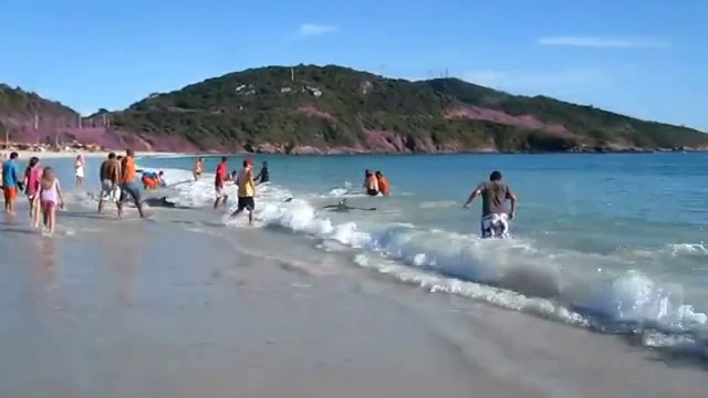 В окрестностях Рио-де-Жанейро люди спасли десятки выбросившихся на берег дельфинов.