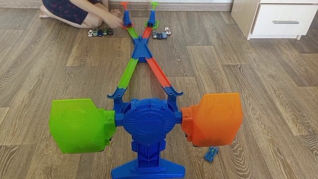 Ваня тестирует🤓 трек для машинок. Задача, чтобы машинка попала в корзинку☺