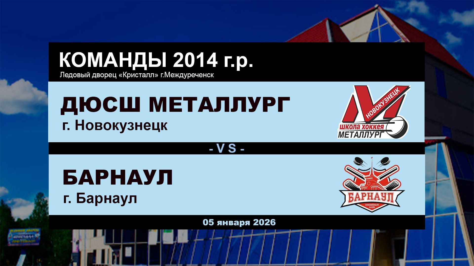 Хоккейная игра 05.01.2026 г. Команды 2014 г.р. Новокузнецк - Барнаул Ледовый дворец "Кристалл" #Междуреченск #Металлург #Барнаул