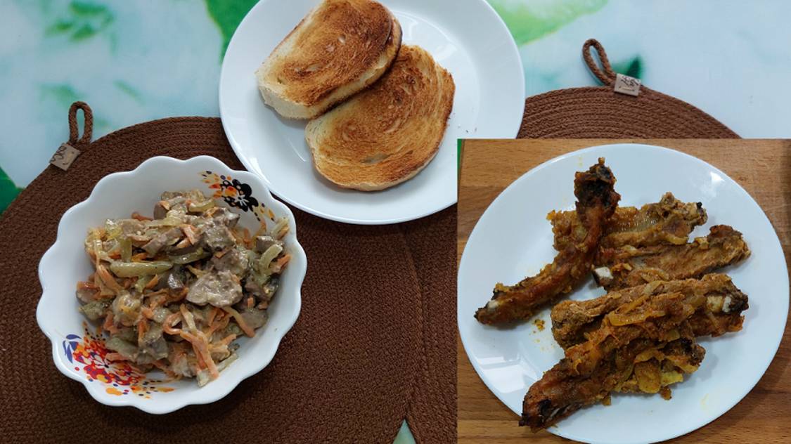 Готовим вкусно. Рёбрышки свиные, запеченные. Салат печеночный. Майонез постный. 17.03.25