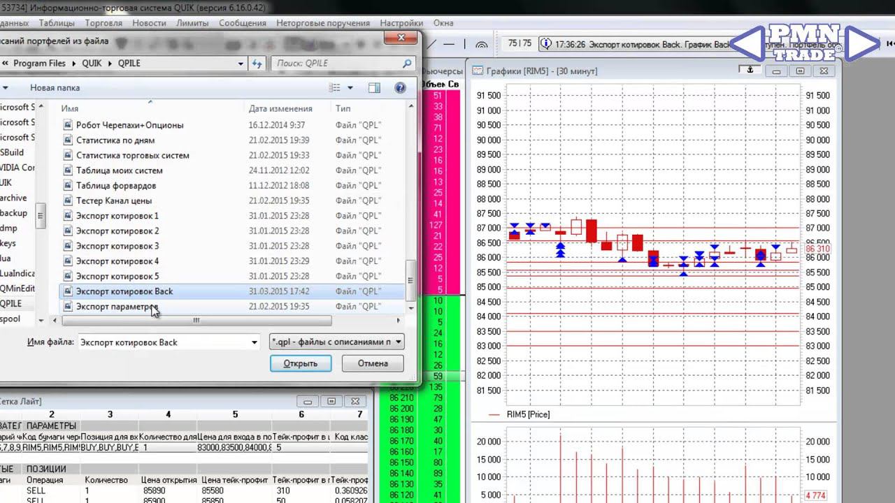 Экспорт котировок из QUIK Back