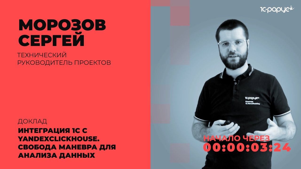 Доклад: «Интеграции 1С с YandexClickHouse. Свобода маневра для анализа данных», Морозов Сергей, технический руководитель проектов. 0:30 Представление докладчика 2:34 Доклад Программа конференции и отдельные записи докладов (будут добавлены после 28 июля 2021): https://rarus.ru/events/20210722-1c-rarustechday-2021-471192/ Список предстоящих мероприятий 1С-Рарус: https://rarus.ru/events/ Полная запись конференции: https://youtu.be/0P7GlejSmSs