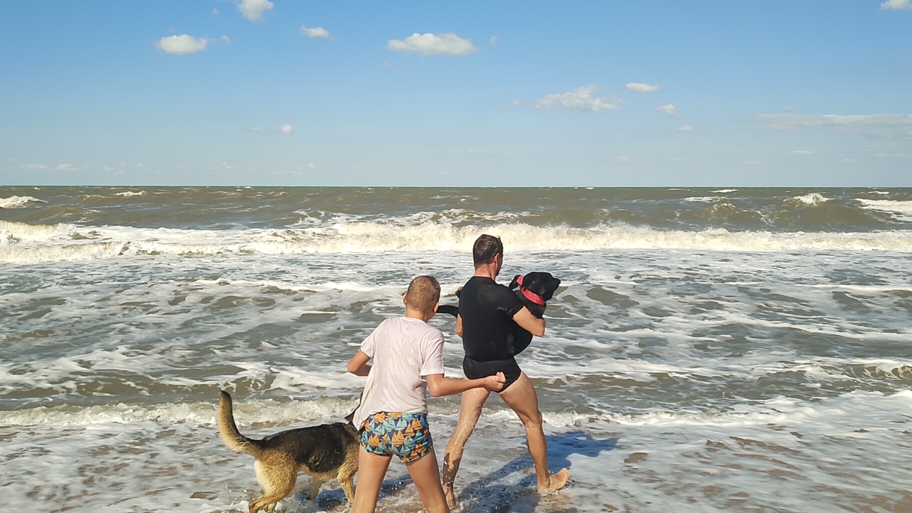ПЕНИСТОЕ И БУРЛЯЩЕЕ АЗОВСКОЕ МОРЕ, СОБАКИ В ШОКЕ