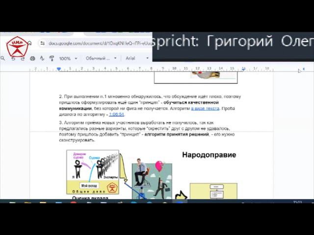 Громыко Г.О. - Сообщение на НИР-конференции про методы изменения общества, - 1. Условия задачи. 2. Принципы работы команды. 3. Стратегия 4. Метод 5. Задачи команды=Постулаты 6. Реализация 7. Кооперация 8. Эпилог 9. Гугл-презентация и видео 10. Длина взгляда. === Оглавления видео-книг в диалогах - НИР - Образец общества или Действующая модель нового социума - https://docs.google.com/document/d/1TZ9_Hw6BdtSUjFmmdXtdwmyUoGnMcEOHk1ncKHmAenI/edit?usp=sharing ВчВО - Воспитание через взаимное обучение - https://docs.google.com/document/d/1x6Vo9ACC9DXArfn7_Ob6g4_0K9GCNLEJ9SZWgDcdJ-U/edit?usp=sharing Русская инженерная школа https://docs.google.com/document/d/1dF_ZrtReEpaXzhxxHmjRwprgjP0xB0HKTBERfMChG20/edit?usp=sharing === Участвуйте в нашей работе-онлайн - Среда с 15 до 18 мск, группа "Образец общества" -текущая работа. Суббота с 18 до 20 мск, - "Талгенизм" - знакомство и конкретная работа по самоучителю всех участников "бригады разработчиков" - повестка дня здесь - https://docs.google.com/document/d/1z8eyCzA_YMt3oKhA7ZBugR2UPO6ntMUM4rt8X727Eb0/edit#heading=h.inqtax6ld10f Все встречи в зуме НИРа https://us04web.zoom.us/j/7902285993 код 030201 Все протоколы групп находятся в доке по этой ссылке - https://docs.google.com/document/d/1z8eyCzA_YMt3oKhA7ZBugR2UPO6ntMUM4rt8X727Eb0/edit?usp=sharing сохраните её себе в удобном месте, чтобы потом не тратить впустую своё и моё время на её поиски. Пожалуйста! === Е-учебник. Концепция. 19:16 - https://youtu.be/sMIjL5MQthk?si=0XmwCMdPSUjXQmC9 === Масальцева Ольга Владимировна, учитель английского, шк. 161, Зеленогорск, Красноярский край, - разговоры - Шк.161-Романова-Масальцева-алгоритмы работы в парах, 26.01.2022 14:18 - https://youtu.be/rkBGKbdzn8w?si=v7b5intgaWnr4nvY Иняз-спорт в школе, Ольга Масальцева - 07 02 2022 44:20 - https://youtu.be/HI4mfCl0R8g?si=_l0XHuxBi7e6Dh1E Разноуровневые дети в парном обучении инязу, 10 12 2022 30:46 - https://youtu.be/Hs1kV0KL0VU?si=SvZXmY-87rUQA4LG === Учитель географии Кряжева Джамиля Селикжановна, Красногорск, Московская область, рассказывает - 26:26 - https://youtu.be/vMHFBbFbECs === ВчВО - Воспитание через взаимное обучение - видео-книга в диалогах - https://docs.google.com/document/d/1x6Vo9ACC9DXArfn7_Ob6g4_0K9GCNLEJ9SZWgDcdJ-U/edit?usp=sharing Телеграм-группа "Согласование" Народного института развития НИРа - https://t.me/+gCLrG5tR3NUwNGVi НИР - Действующая модель нового социума - видеокнига в диалогах - https://docs.google.com/document/d/1TZ9_Hw6BdtSUjFmmdXtdwmyUoGnMcEOHk1ncKHmAenI/edit?usp=sharing === ТГ-группа "Воспитание через взаимное обучение - https://t.me/+natvdoOosMdmZWIy ТГ-группа "Школа радости" - https://t.me/+Aj0CY63HU0QxNjQy ВК-группа "Воспитание через взаимное обучение" - https://vk.com/club21598670 ВК-группа "Школы Радости" - https://vk.com/club21598670 а также - https://vk.com/schoolradosti161 Плэй-лист видео про Школа Радости-161 - https://youtube.com/playlist?list=PL949ECk7DvmQUY9mr2a9IVW_j_gHW-OrS === Связаться с Громыко Григорий Олегович можно так - Телеграм - https://t.me/GrigorijGromyko ВКонтакте - https://vk.com/id23067191 Фэйсбук - https://www.facebook.com/grigorij.gromyko === Работу нашу мы ведём в Телеграм вот здесь - приглашаю! https://t.me/+AsDleWWhqRg1NzAy