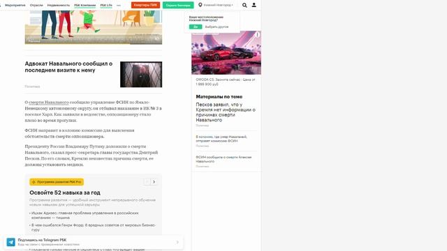 Следственный комитет начал проверку после смерти Навального