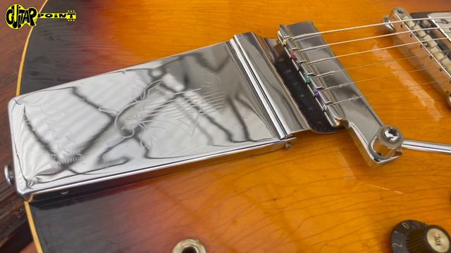More details: https://guitarpoint.de/de/product/1967-gibson-es-335td-w-maestro-sunburst/ 1967 Gibson ES-335TD with factory Maestro tremolo in great condition. Besides the guitar has been converted to old USA Grovers it is all original. It is covered with beautiful weather checking which makes it look and feel very very nice! It comes with a factory Maestro tremolo with makes it an even more versatile instrument. 65-69 Gibson ES models are really going up in value, since they are wonderful instruments with basically the same features as the a lot higher priced pre 65 guitars and just have a little narrower nut width. The original patent number pickups measure 7,62K(B) and 7,21K(N) and the pots are dated 137.67.2x. The weight is 4,02K. Comes incl. original black case with yellow plush.