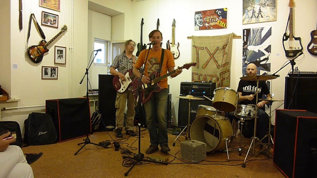 12 июля 2014. Выставка Первого национального музея рок-музыки "Let it be". Арт-центр "Пушкинская. 10". Встреча любителей ретро-гитар со старинными песнями и плясками в исполнении ансамблей "Грибы!", "OleUm tm" и "Pravednik's Band". "Грибы!"