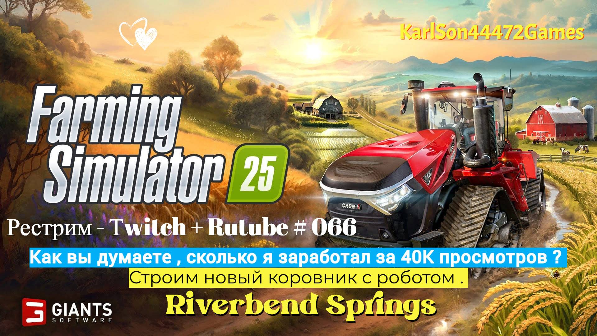 Farming Simulator 25 Строим новый коровник!!! Моё ТОПовое видео уже набрало 40К просмотров!!! Но на сегодняшний день мне заплатили всего лишь 5+7 рублей за весь аккаунт. О,СЮЖЭТТТ!!! Продолжаем прохождение на карте RIVERBEND SPRINGS. Летние хлопоты. Донатики сюды : https://www.donationalerts.com/r/karlson44472games Группа в Вконтакте : https://vk.com/karlson44472games Канал на Твиче : https://www.twitch.tv/karlson44472games Мой Дзен : https://dzen.ru/id/66cdb6269c68d3103d578c03 Канал на YouTube : https://www.youtube.com/@KarlSon44472Games 💻 МОЙ КОМПЬЮТЕР: ◼️ Процессор Ryzen 5 5700F ◼️ Оперативная память DDR4 32Gb ◼️ Видеокарта Nvidia Geforce RTX 4070 Видеоигры ,стриминг : Farming Simulator 25 , Farming Simulator 22 , SnowRunner , Euro Truck Simulator 2 , Luma Island , Battlefield 3 , Cities : Skylines II , Tom Clancy’s The Division II , и другие. #farmingsimulator25 , #games , #игры , #симуляторфермы25