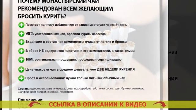 Как бросить курить чай 👉👉👉 https://kahgo.top/mMGOTa5 🔴 Монастырский чай от курения! Бросить курить легко! 👉👉👉 https://kahgo.top/mMGOTa5 Успей заказать со СКИДКОЙ по ПРОМО-ЦЕНЕ 👉👉👉 https://kahgo.top/mMGOTa5 Монастырский чай – натуральное вещество, помогающее в общей сложности за три недели целиком и полностью избавиться от никотиновой зависимости - Без никотиновых пластырей - Без никотиновых жвачек - Без таблеток и БАДов - Без книжек и кодировки Как Монастырский чай помогает бросить курить? Статистика утверждает, только 3-4% заинтересованных бросить курить, в конечном итоге освобождаются от привязанности. Курение — одна из мощных зависимостей в мире, сопоставимая с зависимостью от наркотиков. Строение организма человека таково, что только единицы имеют все шансы бросить курить. Человечий мозг не узнаёт табакокурение как смертельную привычку и настоятельно просит новую и новую порцию никотина. Подавляющее большинство бросающих курить сигареты сами имеют дело с огромным количеством затруднений: - Имеют излишний вес по завершении бросания - Чувствуют беспокойность, непрерывное желание бросить курить - Испытывают страдания от тоски, назойливых мыслей и паники - 90% бросивших курить начинают опять. Для решения вопросов с данными трудностями был собран нетривиальный состав Монастырского чая, определенный преднамеренно для курильщиков. Каким образом действует Монастырский чай? Монастырский чай — это гениальное средство, помогающее совладать с предпосылкой стремления курить. Отчего? - Чай выводит из организма человека 99,99% никотина на протяжении 3х недель. Привычка отходит на чисто физиологическом уровне, ваш организм очень быстро забывает о никотине. - Чай выводит из организма человека яды, улучшая состояние здоровья. Вы теперь уже не захотите возвращаться к одышке, противному аромату изо рта, усталости. - Чай крепит и успокаивает нервную систему. Вы позабудете о стрессе, невольном желании скурить сигаретку и постоянной нервности. - Чай успокаивает излишний голод. Вы не будете подумывать съесть лишнего, потому, что Ваш организм будет в безмятежном и расслабленном состоянии. Какие конкретно изменения случаться в Вашем организме спустя 3 недели? - Вы на сто процентов очистите Ваш организм от смол, шлаков и никотина, сосредоточившихся во внутренних органах и костном мозге. - Ваши лёгкие сумеют прорабатывать на 80% больше кислорода, в связи с чем умножится работоспособность. - Вы до конца избавитесь от нервности, частого хотения подымить и отвлечься. - Вы станете выглядеть не в пример лучше, народится охота активности и физических нагрузок. Вы будете чувствовать себя на 5-10 лет моложе. - Вы освободитесь от желания закусить что-то или выпить. 90% курильщиков прекращают пить сразу же по завершении избавления от никотинов