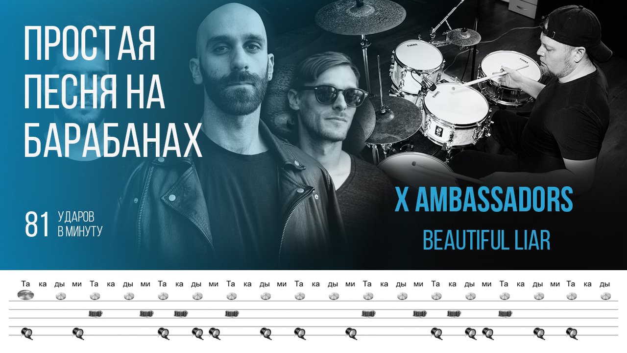 Тренировочная песня для игры на барабанах / X Ambassadors - Beautiful Liar / 81 bpm