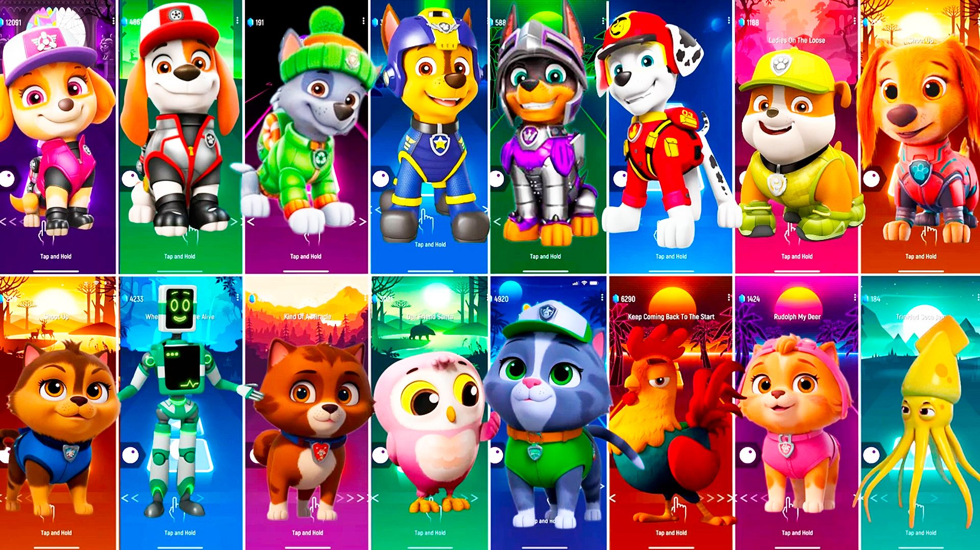 Мультики для Детей Щенячий Патруль Tiles Hop - СКАЙ, РОККИ, ГОНЩИК, МАРШАЛЛ, КРЕПЫШ