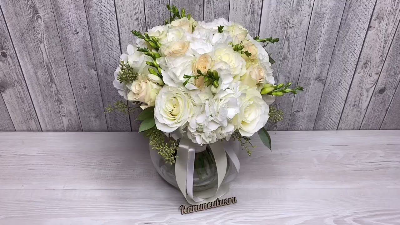 Свадебный букет невесты из белых роз и гортензий. Детальнее о товаре https://ranunculus.ru/svadebnaya-floristika/buket-nevesty/buket-nevesty-iz-belykh-roz-i-gortenziy/ Смотрите также: Композиции из живых цветов на стол молодоженов https://ranunculus.ru/svadebnaya-floristika/kompozitsii-na-stol-molodozhenov/ Наш интернет-магазин https://ranunculus.ru