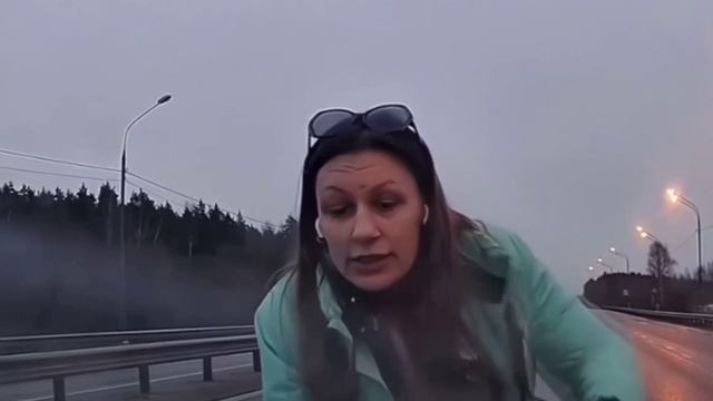 Неадекватная девушка на трассе