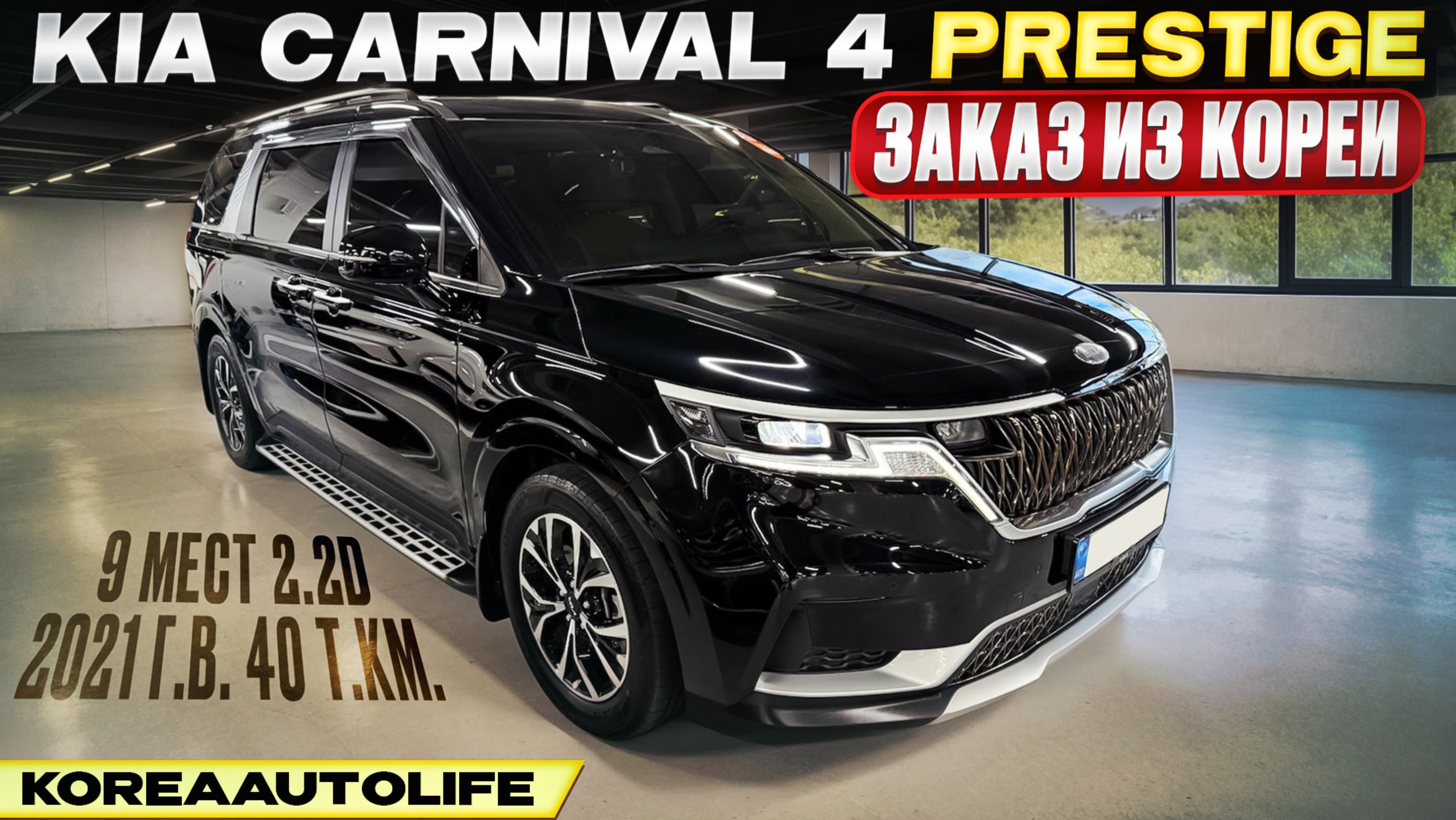 Обзор для заказа из Кореи KIA Carnival 4 Prestige 9 мест 2.2D авто 2021 года с пробегом 40 т.км.