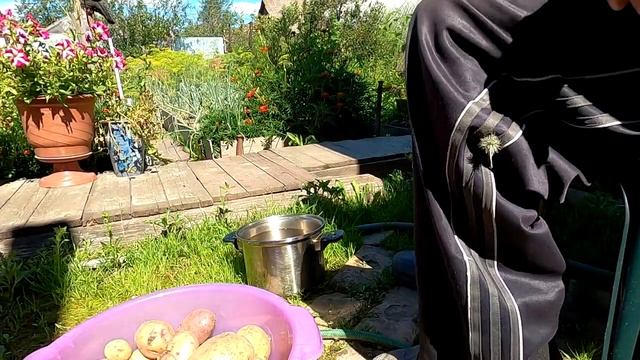 Пробуем подкопать картошку на нашем огороде и пожарить её .