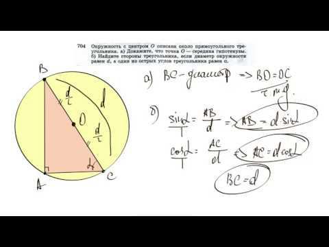 №704. Окружность с центром О описана около прямоугольного треугольника, а) Докажите, что точка О — середина гипотенузы, б) Найдите стороны треугольника, если диаметр окружности равен d, а один из острых углов треугольника равен α. Поддержать канал рублём - 5469400944002125 (Сбербанк) TikTok - https://vm.tiktok.com/WJJwK9 Мой второй канал для подготовки к ЕГЭ и ОГЭ - https://www.youtube.com/ЕвгенийСумин Инстаграм - https://www.instagram.com/EGE_OGE.math Личный инстаграм - https://www.instagram.com/ee_sumin VK - https://vk.com/evgeniysumin FB - https://www.facebook.com/EvgeniySumin