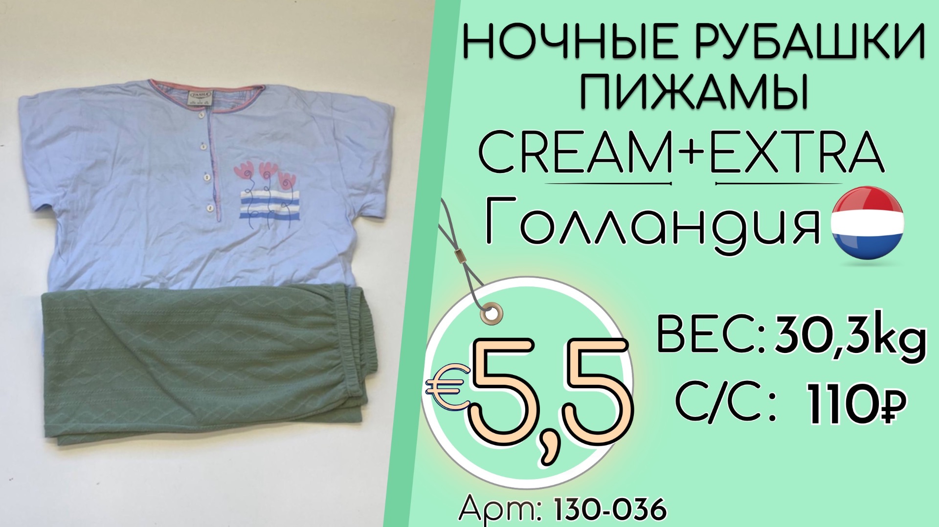 Бронь! 130-036 #3340 Ночные рубашки + пижамы Крем+Экстра Всесезон Голландия