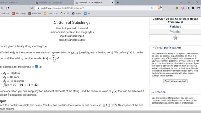 Hey guys, this is Aayush (CF ID: arsinha). In this video, I have explained the solution to Problems A, B & C from the Codeforces Round #795 Div 2. If you have any queries please put them in the comments. Make sure you like and subscribe : ) Timestamps: 0:00 - A. Beat The Odds 1:33 - B. Shoe Shuffling 4:38 - C. Sum of Substrings