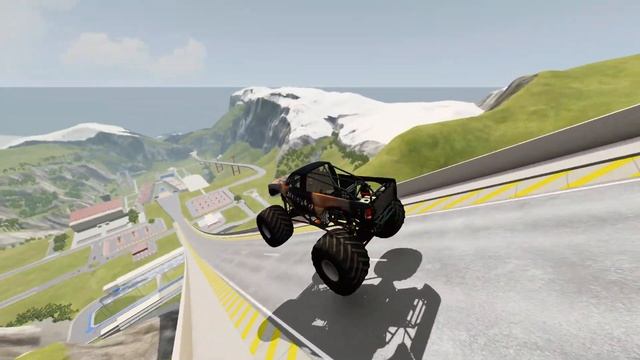 Эпические прыжки и аварии монстр-траков на высокой скорости в BeamNG Drive