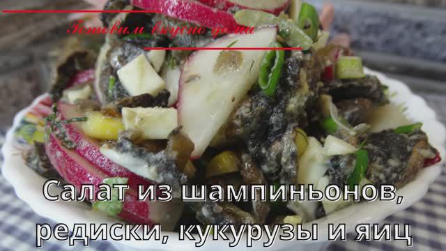 Салат из шампиньонов, редиски, кукурузы и яиц