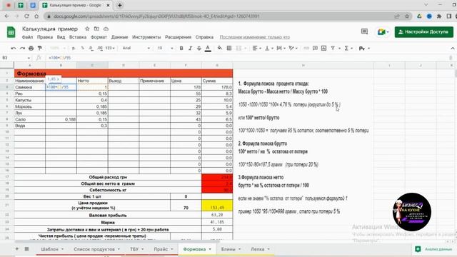 Группа по обмену опытом и для общения с единомышленниками "Полуфабрикаты на продажу" 👇👇👇 https://t.me/+PCynJ0vTgkMzYjMy Себестоимость полуфабрикатов - Это сумма затрат, связанных с производством определенного вида продукта. В нашем случае затраты на производство 1 кг полуфабрикатов. Подсчет таких затрат называют калькулированием себестоимости, а бухгалтерский документ, в котором зафиксирован такой расчет - калькуляцией. Использование Гугл таблицы в качестве калькулятора для расчета себестоимости упростит вам работу в дальнейшем. Если у вас возникли вопросы: Как рассчитать цену для продажи полуфабрикатов? Как правильно рассчитать себестоимость товара? Как формируется себестоимость? В чем разница между стоимостью и себестоимостью? Если вам нужен пример калькуляции конкретного изделия рекомендую к просмотру данное видео. ---------------------------------------------------------------------------------------------------------------------- Себестоимость 1 кг полуфабрикатов — это совокупность затрат сырья на производство 1 кг. Калькуляция - это документ расчета себестоимости готовой продукции. Валовая прибыль это разница между себестоимостью и ценой продаж. В этот показатель входит чистая прибыль и затраты на производство ( постоянные и промежуточные). Валовая прибыль деленная на себестоимость покажет процент наценки. Нужен это показатель для ценообразования. С помощью наценки формируется продажные цены. Валовая прибыль поделенная на цену продажи покажет маржу, то есть грязную прибыль от суммы продажи в % --- --- --- Плейлист " Что нужно знать до начала работы" https://www.youtube.com/playlist?list=PL-20yfPtbOvb3RImOjTHCocXmkuRfBJtR --- --- --- Как рассчитать правильное количество продуктов для рецепта https://www.youtube.com/watch?v=sYTYwIarlLk&t=25s --- --- --- #полуфабрикатынапродажу #бизнеснакухне --------------------------------------------------------------------------------------------------------------------------- 00:57 Создаем таблицу Гугл 01:24 Листы в таблице 03:25 Лист “ Список продуктов” 04:15 Обзор шаблона таблицы для расчета себестоимости 05:55 Заполняем таблицу 21:52 Кому подойдет этот способ ценообразования. 22:00 Мой 1 способ определения цены реализации #полуфабрикатынапродажу #бизнеснакухне