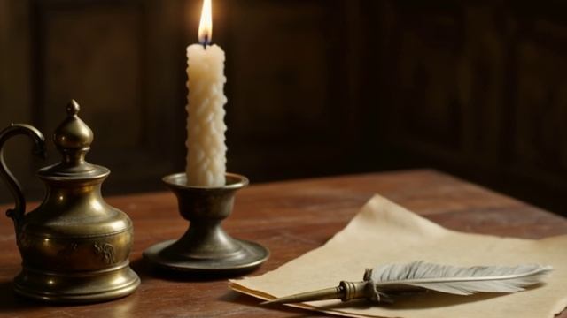 Футаж. Свеча,. Чернильница. Перо.