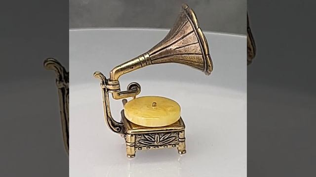 Фигурка с молочным янтарем Патефон 5 х 3 см